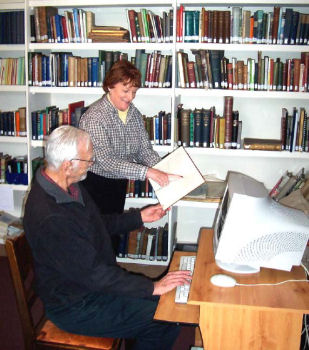 Other important improvements have been made in the Helen MacPherson Thompson Library. Here we see Jean and Gordon Duffy at work cataloguing the extensive collection of books located in the Library.